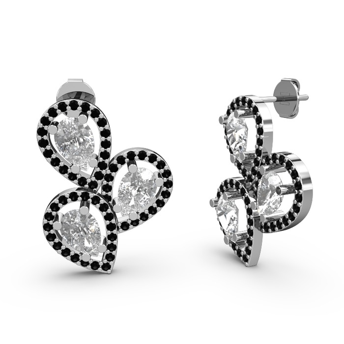 Siyah zirkon ve swarovski 18 ayar beyaz altın küpe