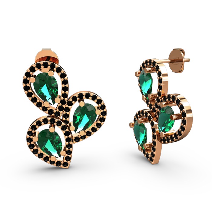 Siyah zirkon ve yeşil kuvars 14 ayar rose altın küpe