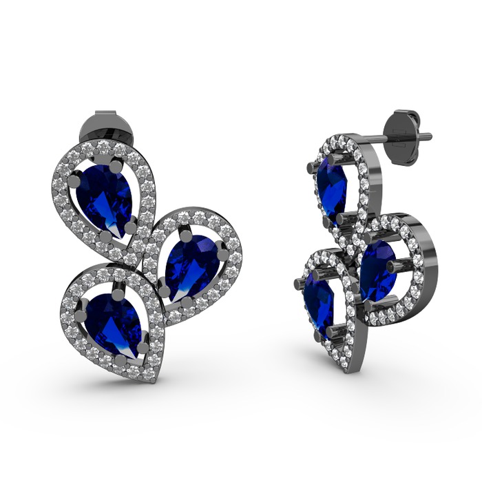 Swarovski ve lab safir 925 ayar siyah rodyum kaplama gümüş küpe