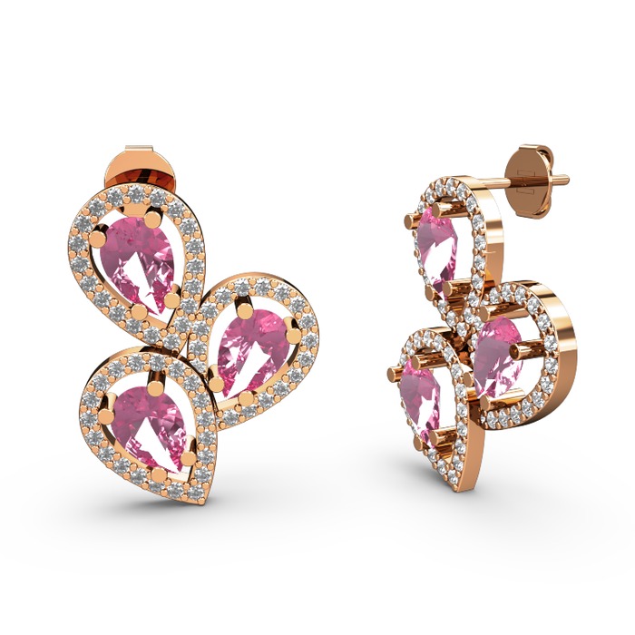 Swarovski ve pembe kuvars 14 ayar rose altın küpe