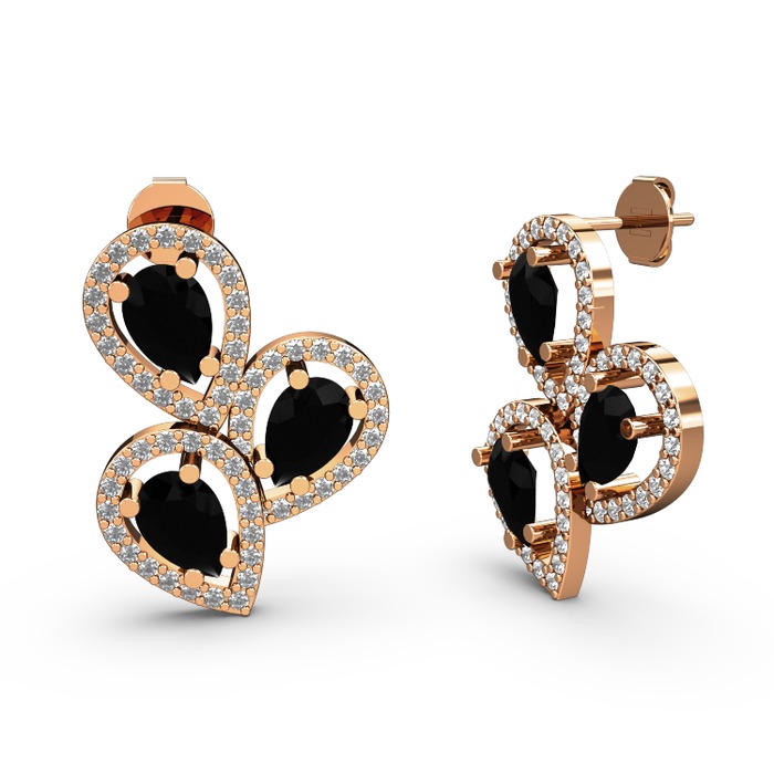 Swarovski ve siyah zirkon 14 ayar rose altın küpe