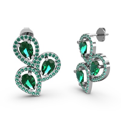 Yeşil kuvars 18 ayar beyaz altın küpe