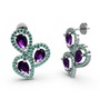Yeşil kuvars ve ametist 8 ayar beyaz altın küpe