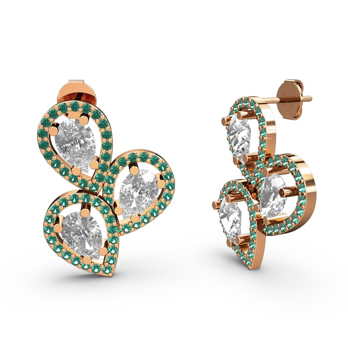 Yeşil kuvars ve beyaz zirkon 18 ayar rose altın küpe