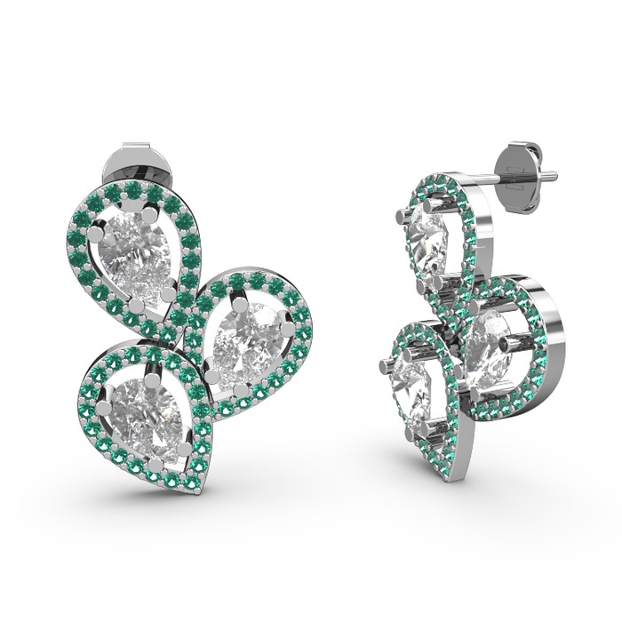 Yeşil kuvars ve beyaz zirkon 8 ayar beyaz altın küpe