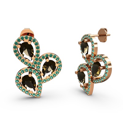 Yeşil kuvars ve dumanlı kuvars 18 ayar rose altın küpe