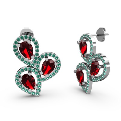 Yeşil kuvars ve garnet 14 ayar beyaz altın küpe