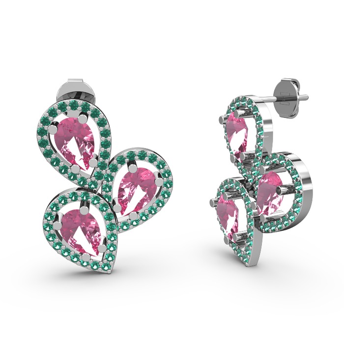 Yeşil kuvars ve pembe kuvars 18 ayar beyaz altın küpe