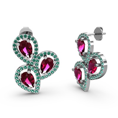 Yeşil kuvars ve rodolit garnet 18 ayar beyaz altın küpe