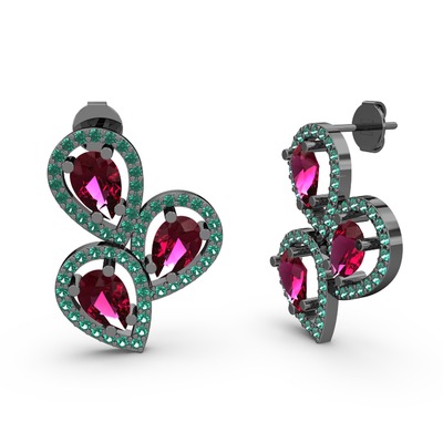 Yeşil kuvars ve rodolit garnet 925 ayar siyah rodyum kaplama gümüş küpe