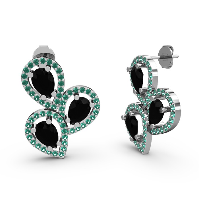 Yeşil kuvars ve siyah zirkon 8 ayar beyaz altın küpe