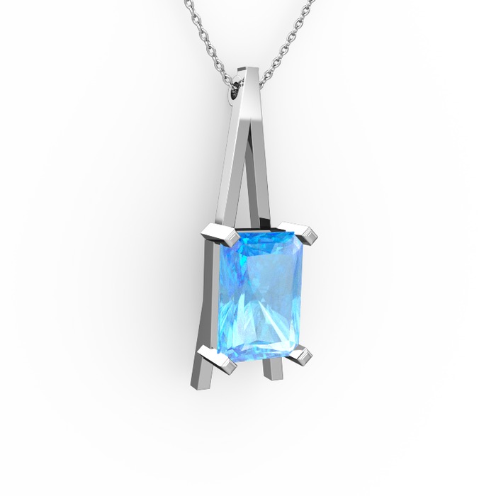 Akuamarin 14 ayar beyaz altın kolye (40 cm beyaz altın rolo zincir)