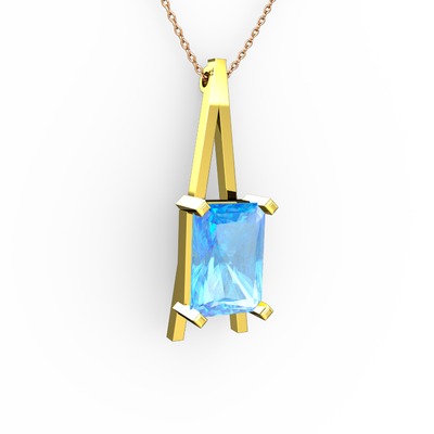 Akuamarin 925 ayar altın kaplama gümüş kolye (40 cm rose altın rolo zincir)