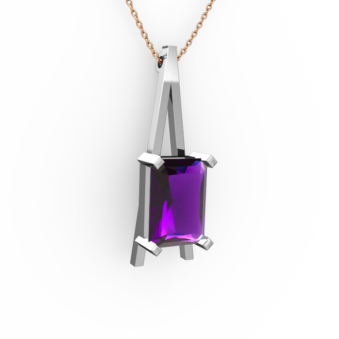 Ametist 14 ayar beyaz altın kolye (40 cm rose altın rolo zincir)