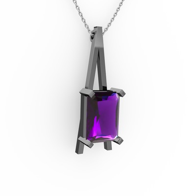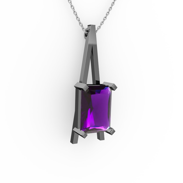 Ametist 925 ayar siyah rodyum kaplama gümüş kolye (40 cm beyaz altın rolo zincir)