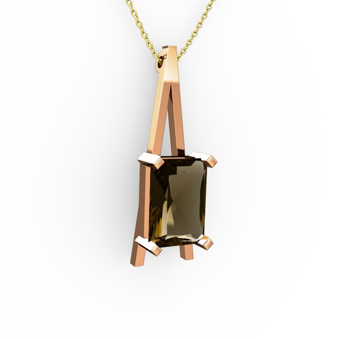 Dumanlı kuvars 18 ayar rose altın kolye (40 cm altın rolo zincir)