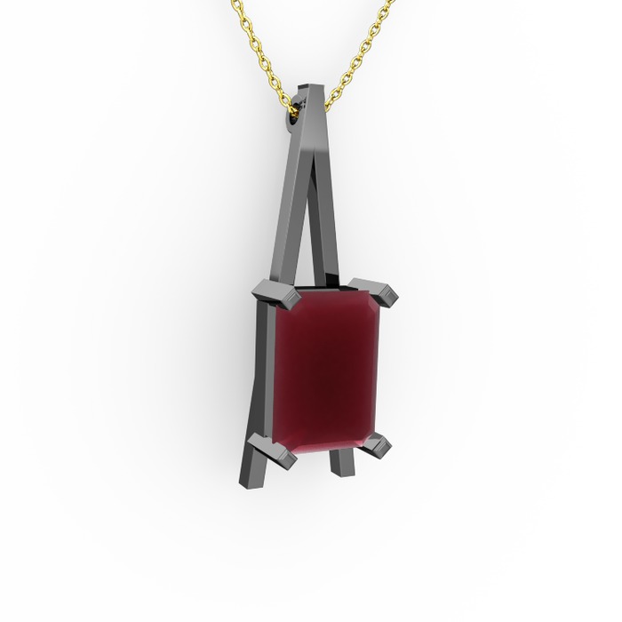 Kök yakut 925 ayar siyah rodyum kaplama gümüş kolye (40 cm altın rolo zincir)