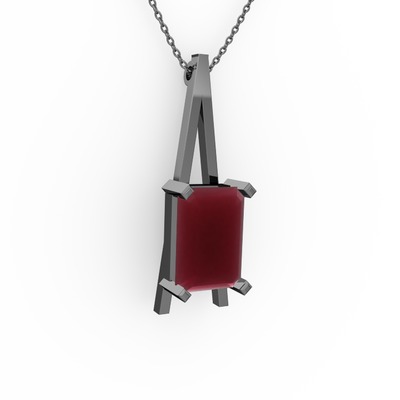Kök yakut 925 ayar siyah rodyum kaplama gümüş kolye (40 cm gümüş rolo zincir)