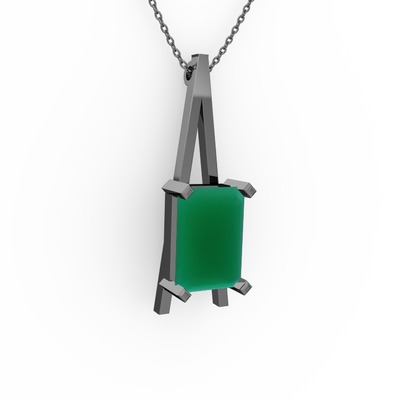 Kök zümrüt 925 ayar siyah rodyum kaplama gümüş kolye (40 cm gümüş rolo zincir)