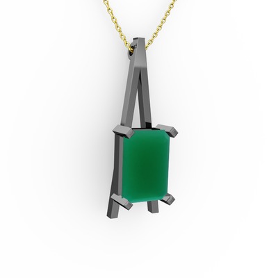Kök zümrüt 925 ayar siyah rodyum kaplama gümüş kolye (40 cm gümüş rolo zincir)