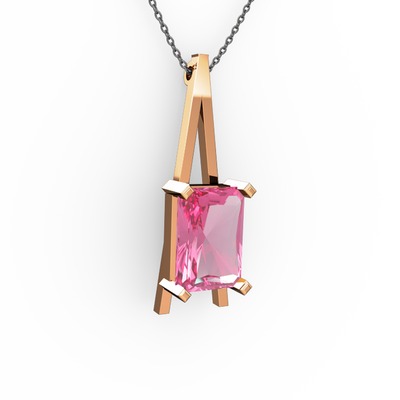 Pembe kuvars 14 ayar rose altın kolye (40 cm gümüş rolo zincir)
