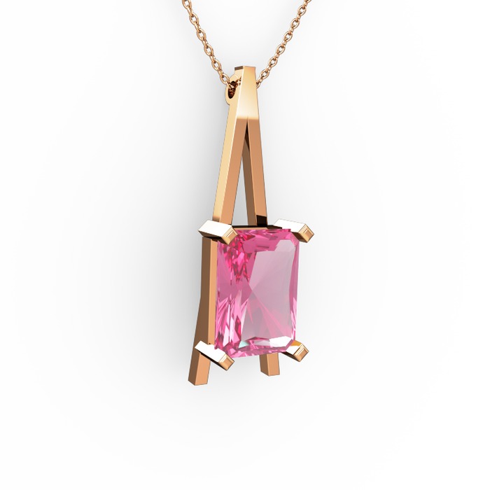 Pembe kuvars 14 ayar rose altın kolye (40 cm rose altın rolo zincir)