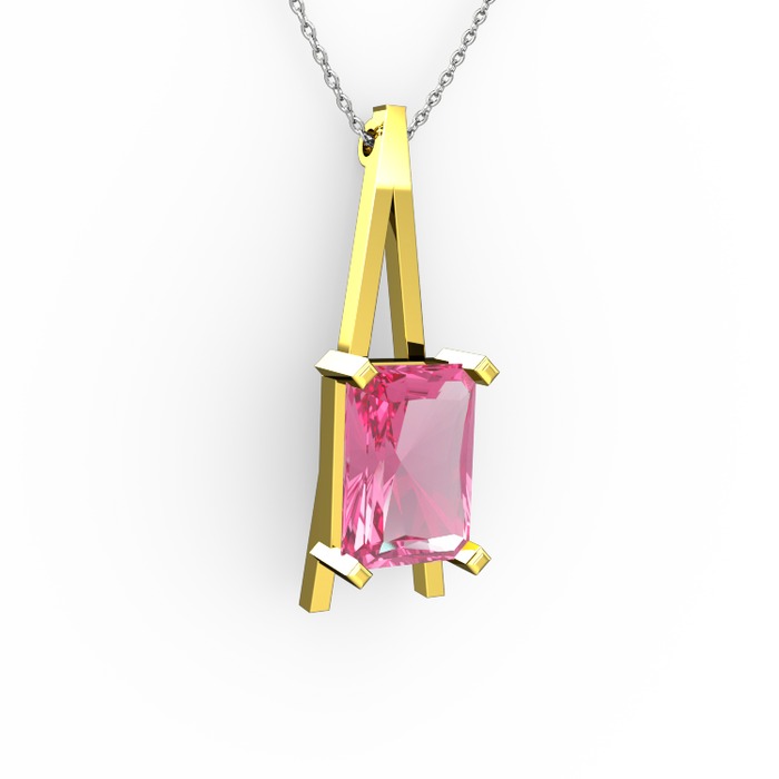 Pembe kuvars 18 ayar altın kolye (40 cm beyaz altın rolo zincir)