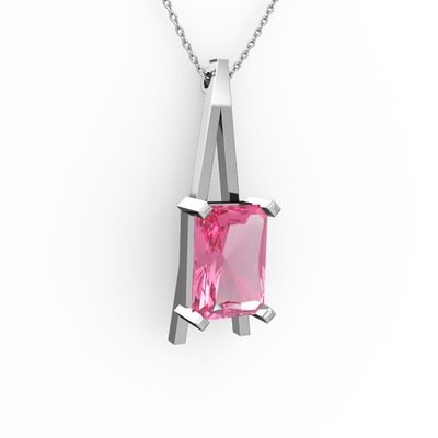 Pembe kuvars 8 ayar beyaz altın kolye (40 cm beyaz altın rolo zincir)