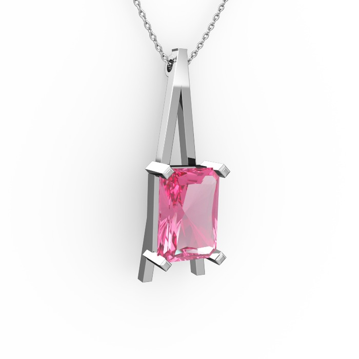 Pembe kuvars 8 ayar beyaz altın kolye (40 cm gümüş rolo zincir)
