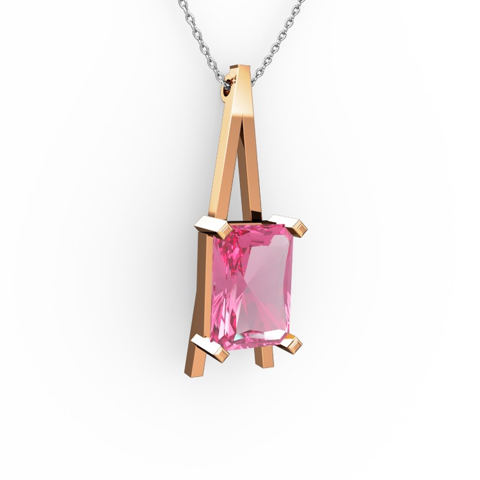 Pembe kuvars 8 ayar rose altın kolye (40 cm gümüş rolo zincir)