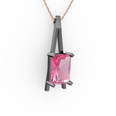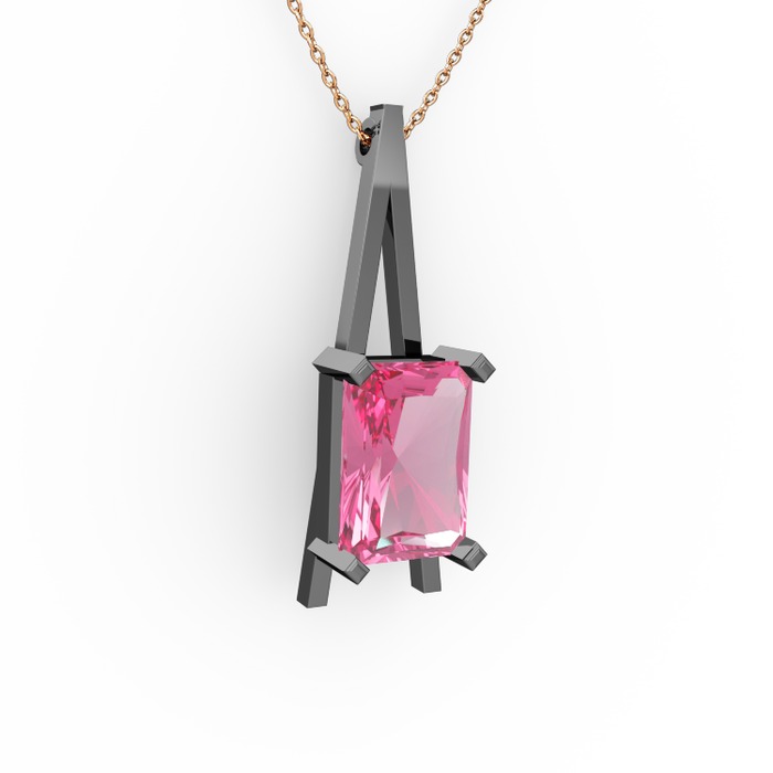 Pembe kuvars 925 ayar siyah rodyum kaplama gümüş kolye (40 cm rose altın rolo zincir)