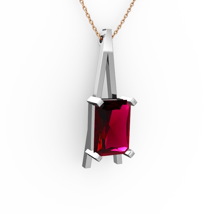 Rodolit garnet 18 ayar beyaz altın kolye (40 cm rose altın rolo zincir)