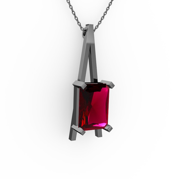 Rodolit garnet 925 ayar siyah rodyum kaplama gümüş kolye (40 cm gümüş rolo zincir)