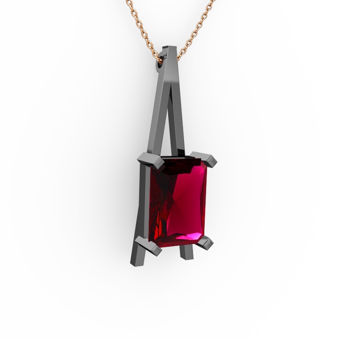 Rodolit garnet 925 ayar siyah rodyum kaplama gümüş kolye (40 cm rose altın rolo zincir)