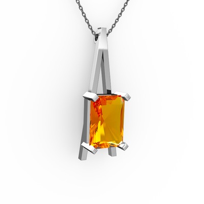 Sitrin 14 ayar beyaz altın kolye (40 cm gümüş rolo zincir)