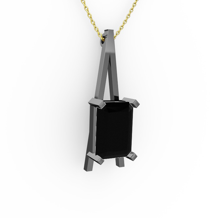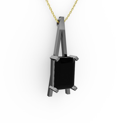 Siyah zirkon 925 ayar siyah rodyum kaplama gümüş kolye (40 cm altın rolo zincir)