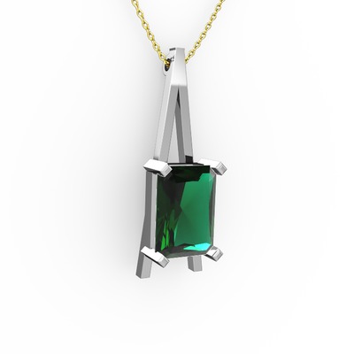 Yeşil kuvars 14 ayar beyaz altın kolye (40 cm gümüş rolo zincir)