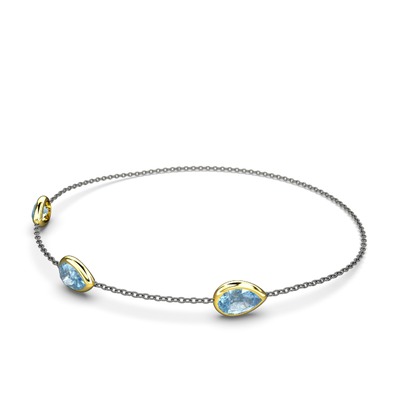 Akuamarin 14 ayar altın bilezik (17 cm gümüş rolo zincir)