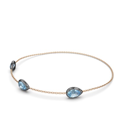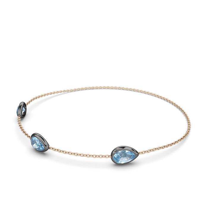 Akuamarin 925 ayar siyah rodyum kaplama gümüş bilezik (17 cm rose altın rolo zincir)