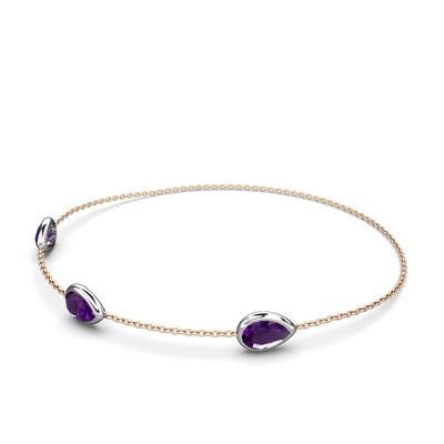 Ametist 14 ayar beyaz altın bilezik (17 cm rose altın rolo zincir)