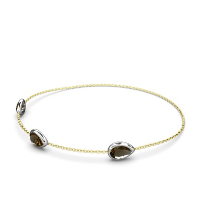 Dumanlı kuvars 925 ayar gümüş bilezik (17 cm altın rolo zincir)