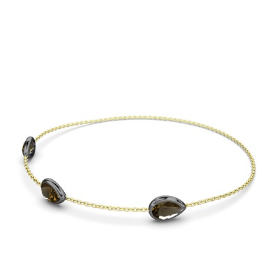 Dumanlı kuvars 925 ayar siyah rodyum kaplama gümüş bilezik (17 cm altın rolo zincir)