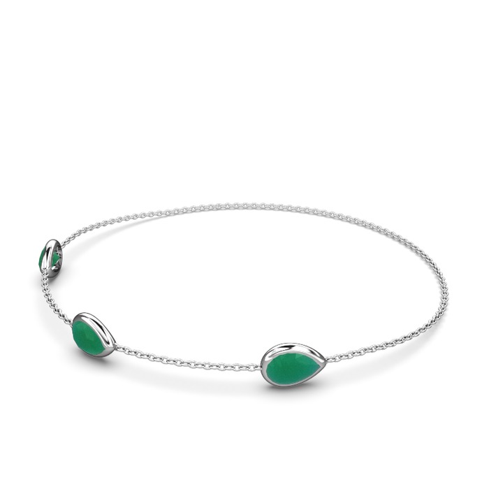 Kök zümrüt 8 ayar beyaz altın bilezik (17 cm gümüş rolo zincir)