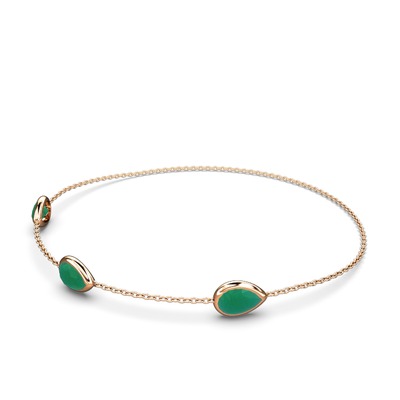 Kök zümrüt 925 ayar rose altın kaplama gümüş bilezik (17 cm rose altın rolo zincir)