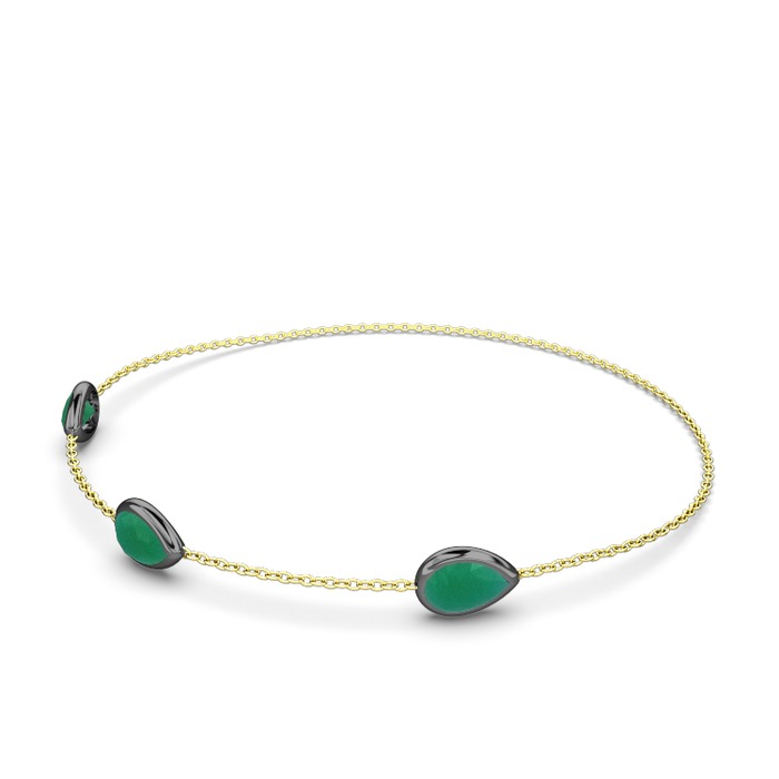Kök zümrüt 925 ayar siyah rodyum kaplama gümüş bilezik (17 cm gümüş rolo zincir)