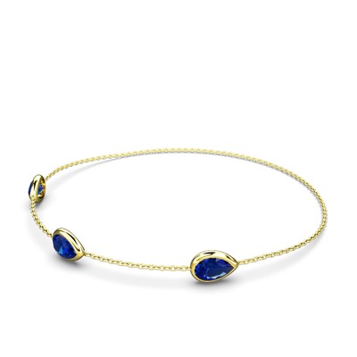 Lab safir 14 ayar altın bilezik (17 cm gümüş rolo zincir)