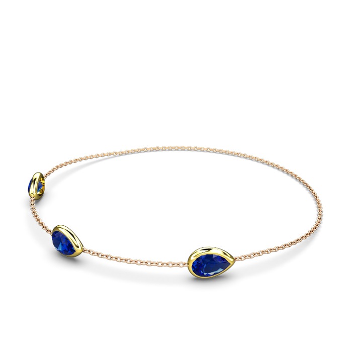 Lab safir 18 ayar altın bilezik (17 cm rose altın rolo zincir)
