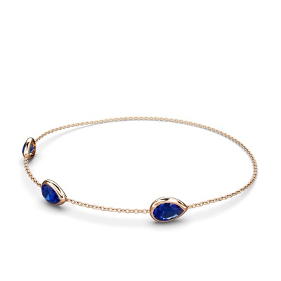 Lab safir 8 ayar rose altın bilezik (17 cm gümüş rolo zincir)