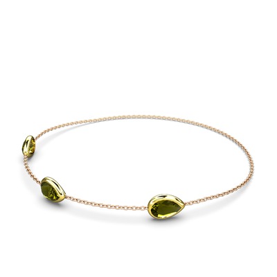 Peridot 14 ayar altın bilezik (17 cm rose altın rolo zincir)