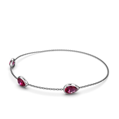 Rodolit garnet 8 ayar beyaz altın bilezik (17 cm gümüş rolo zincir)